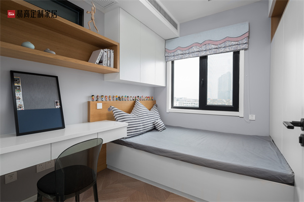 兒童房榻榻米:小戶型的次臥比較小,如果想將次臥打造成兒童房,可以選擇將書桌、衣柜以及榻榻米一體定制設計,或者空間不是很大,但是也可以滿足小孩子的休息和游戲的需要,再花點心思布置,搭配上合適的軟裝,讓整體空間變得更加溫馨舒適。