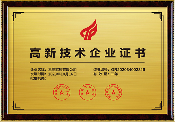榮譽名稱:國家高新技術企業認證證書