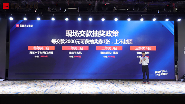 ▲易高家居主動(dòng)營(yíng)銷總監(jiān)孫宇發(fā)布優(yōu)惠政策